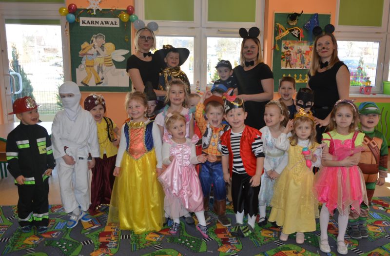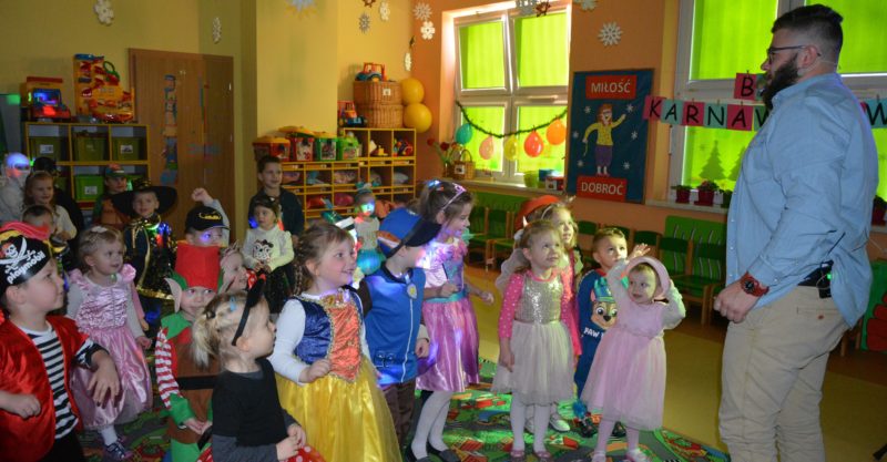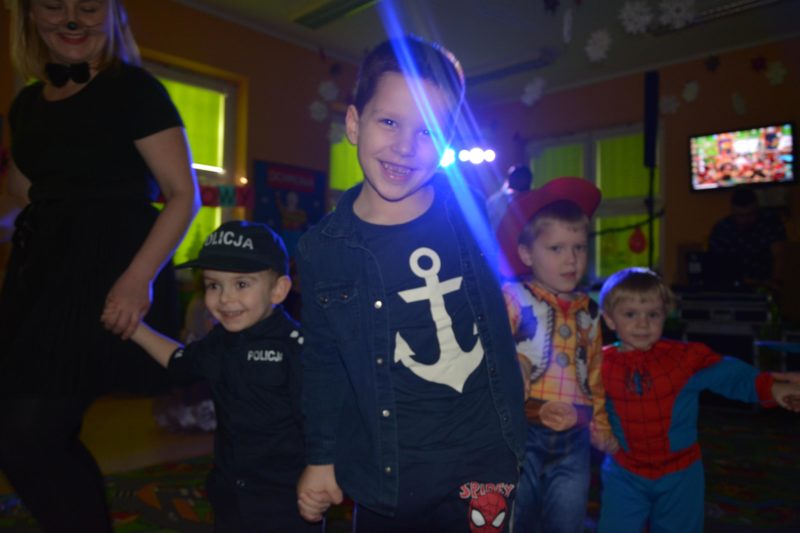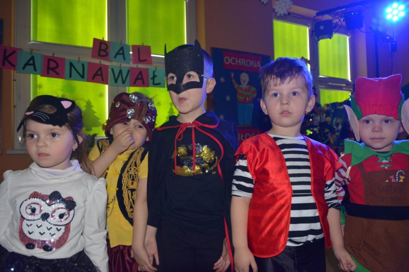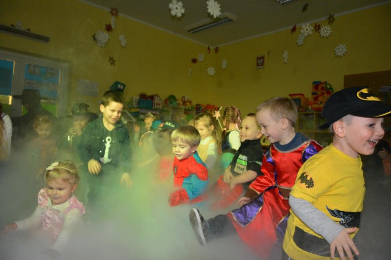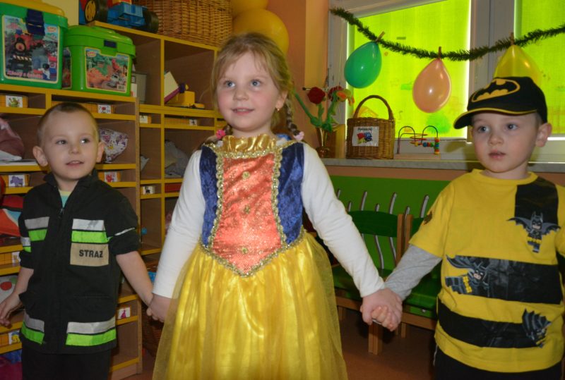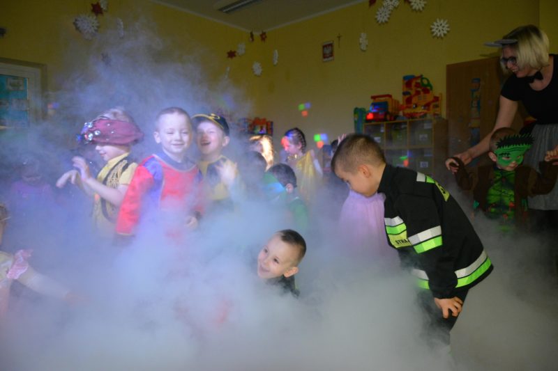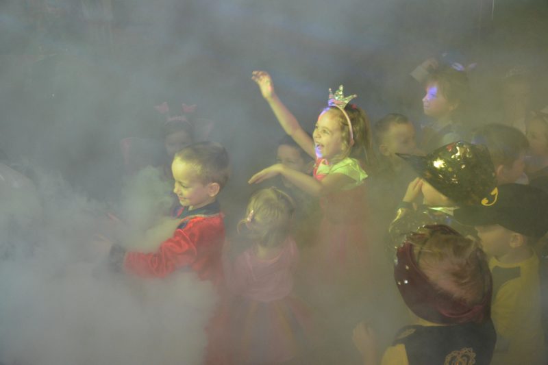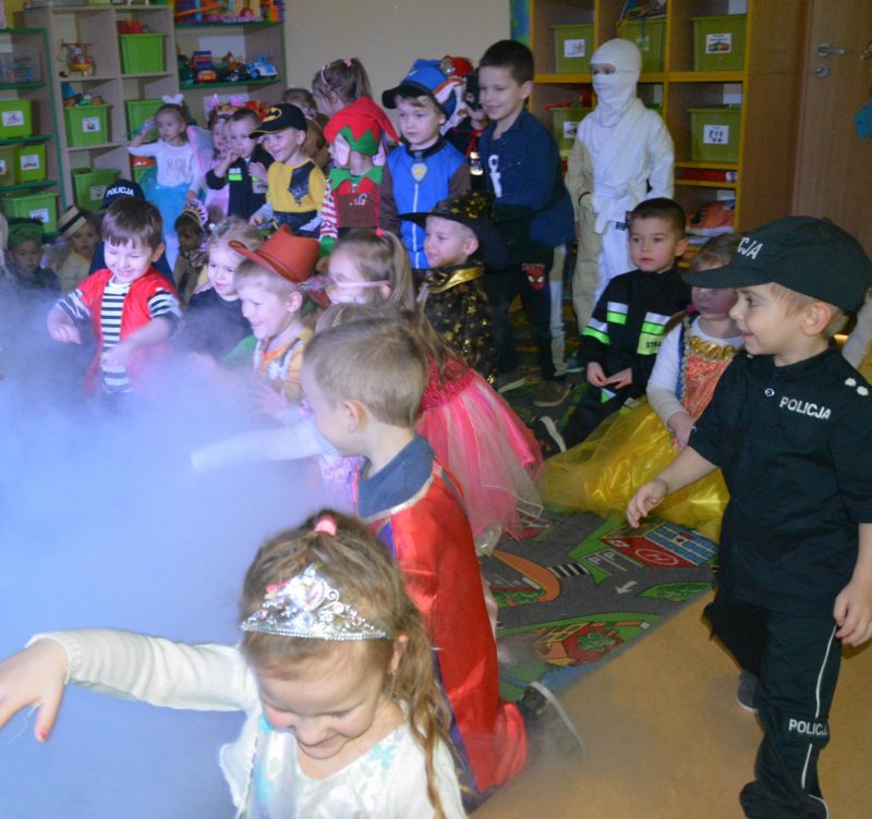 I choć tegoroczny bal karnawałowy trwał dwie godziny, z pewnością pozostał w pamięci dzieci na znacznie dłużej. Jak co roku Promyczki pomysłowo przebrały się za różne bajkowe postacie, nie zabrakło pięknych księżniczek i dzielnych rycerzy, piratów, kowbojów, a porządku pilnowali odważni policjanci. Kiedy w sali pojawiła się niespodzianka w postaci ciężkiego dymu, radości było co niemiara.