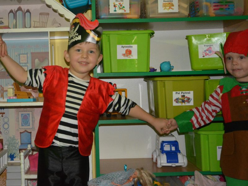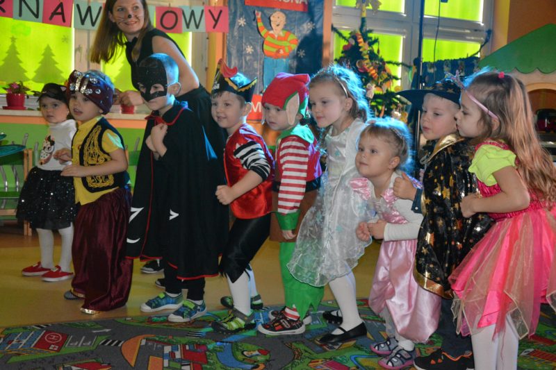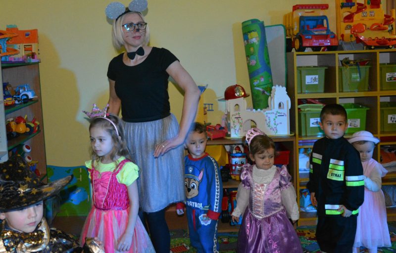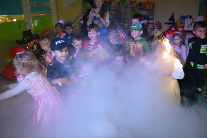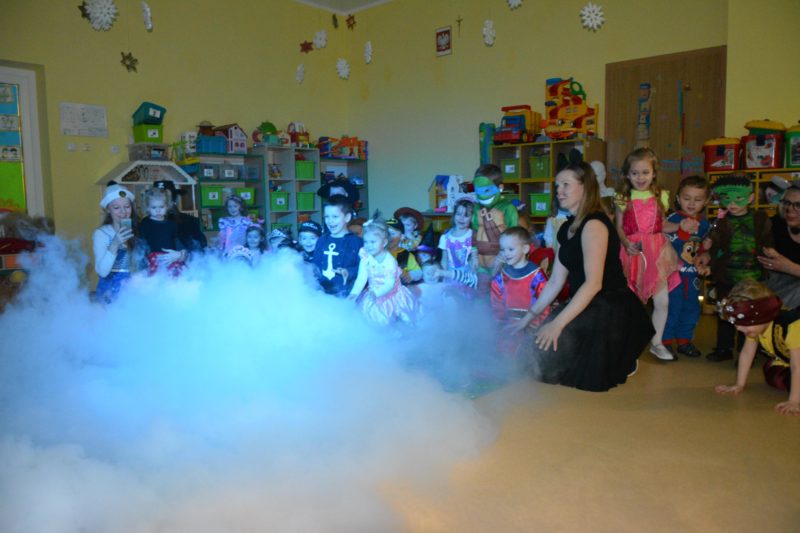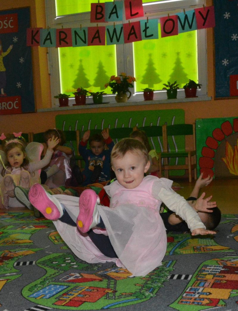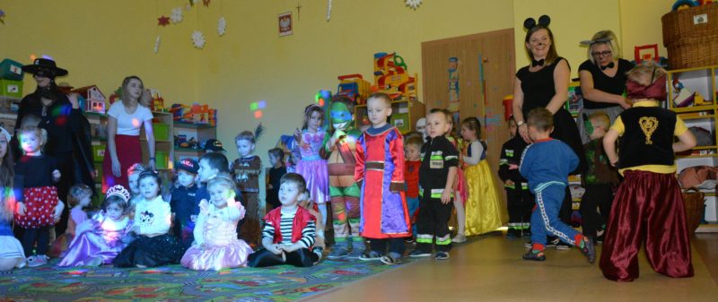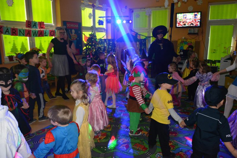 I choć tegoroczny bal karnawałowy trwał dwie godziny, z pewnością pozostał w pamięci dzieci na znacznie dłużej. Jak co roku Promyczki pomysłowo przebrały się za różne bajkowe postacie, nie zabrakło pięknych księżniczek i dzielnych rycerzy, piratów, kowbojów, a porządku pilnowali odważni policjanci. Kiedy w sali pojawiła się niespodzianka w postaci ciężkiego dymu, radości było co niemiara.