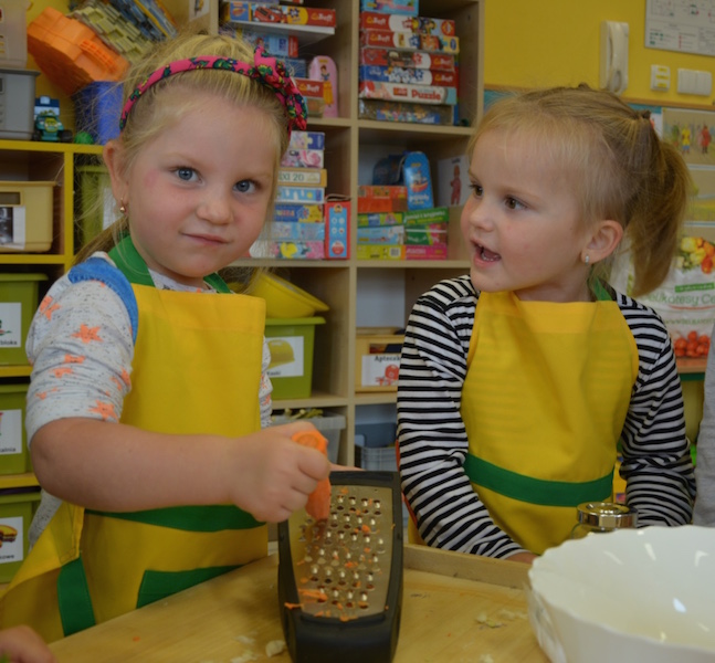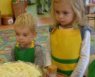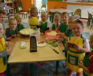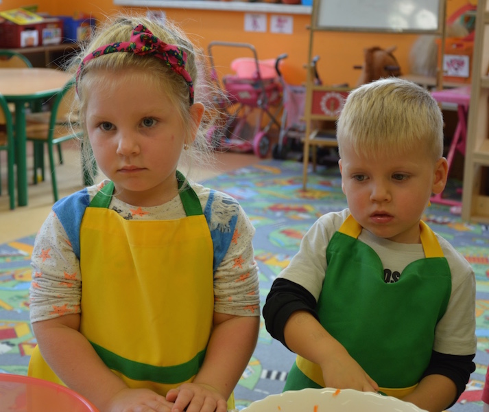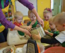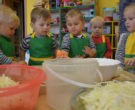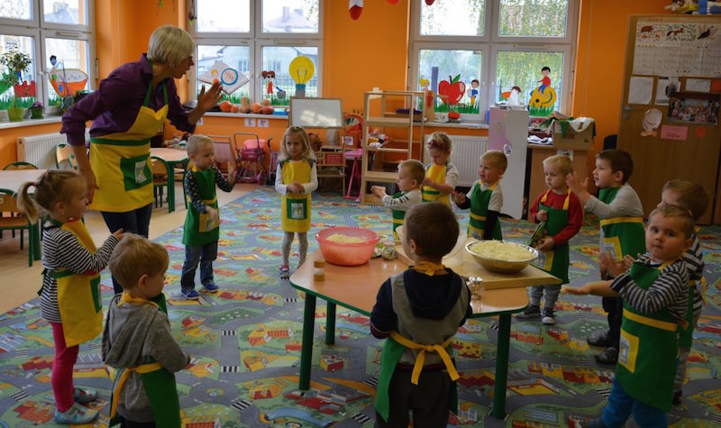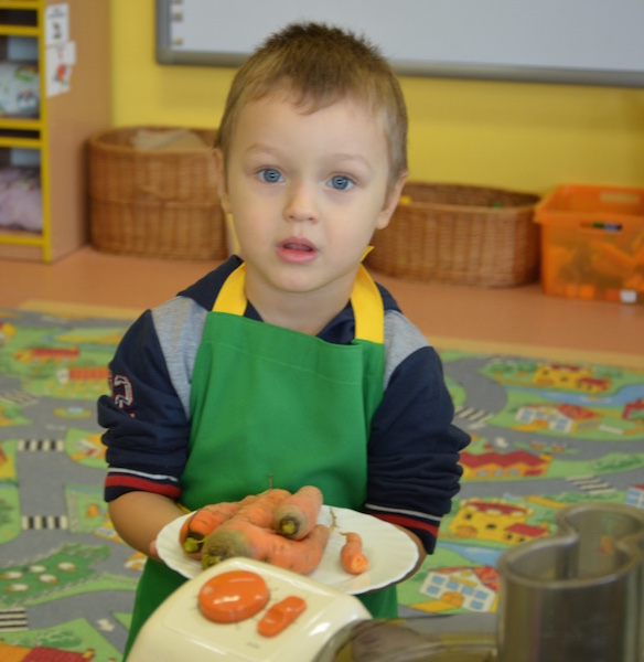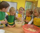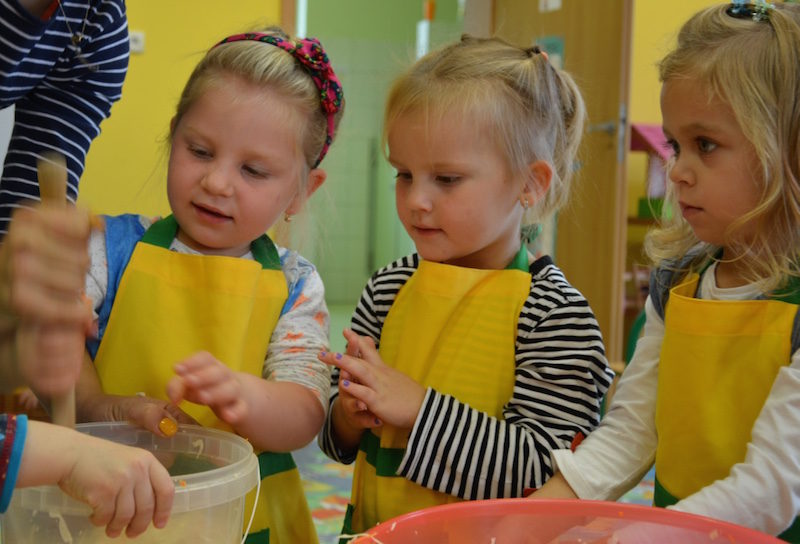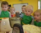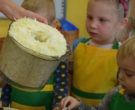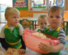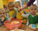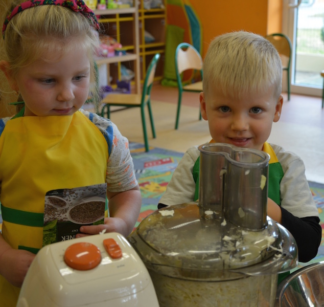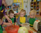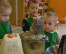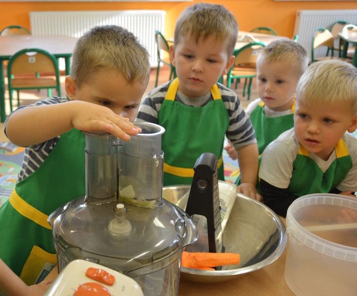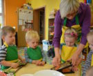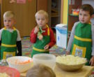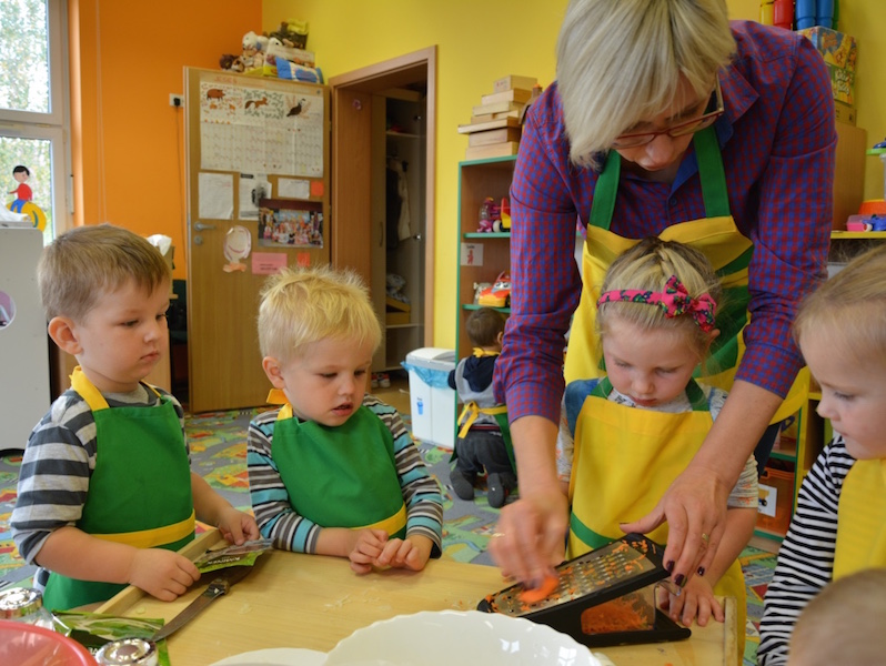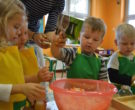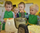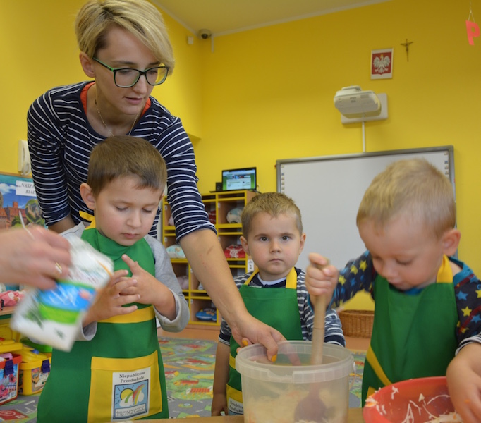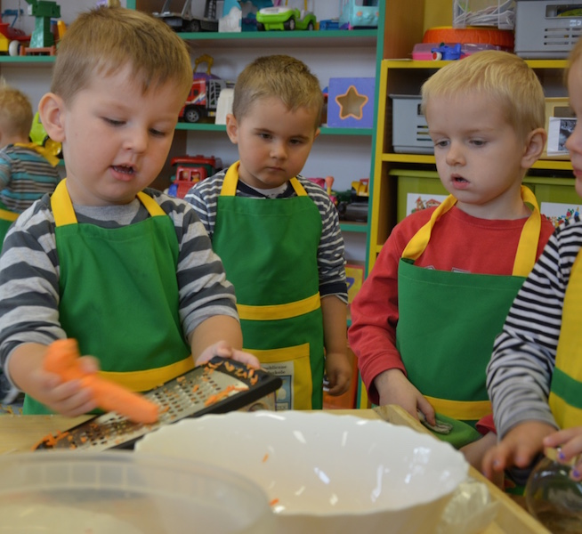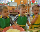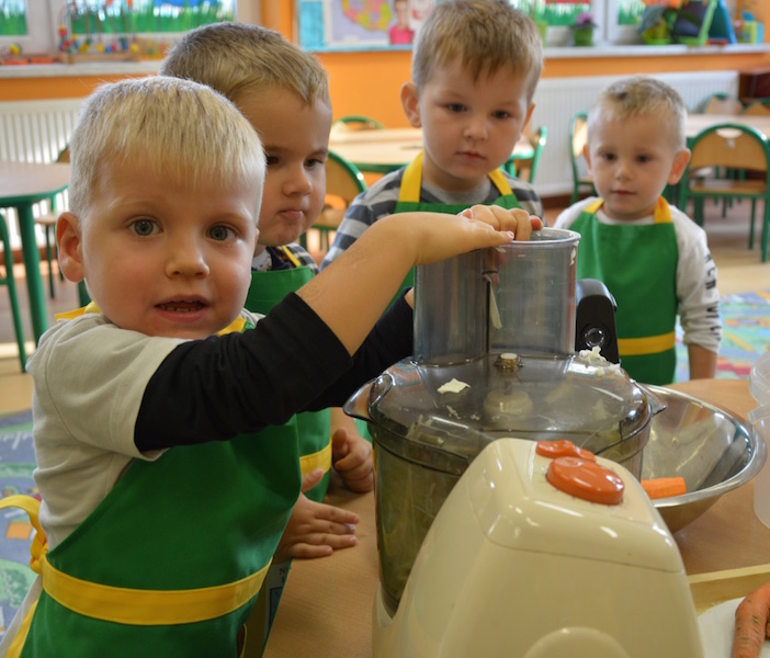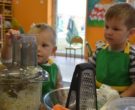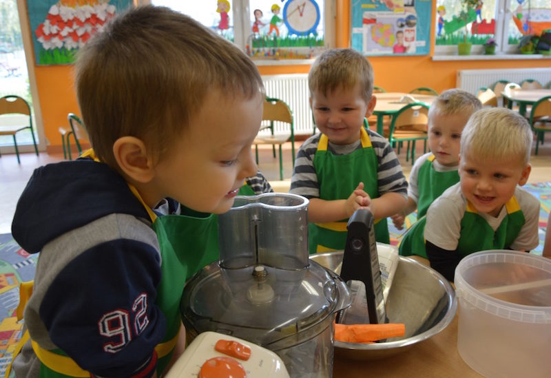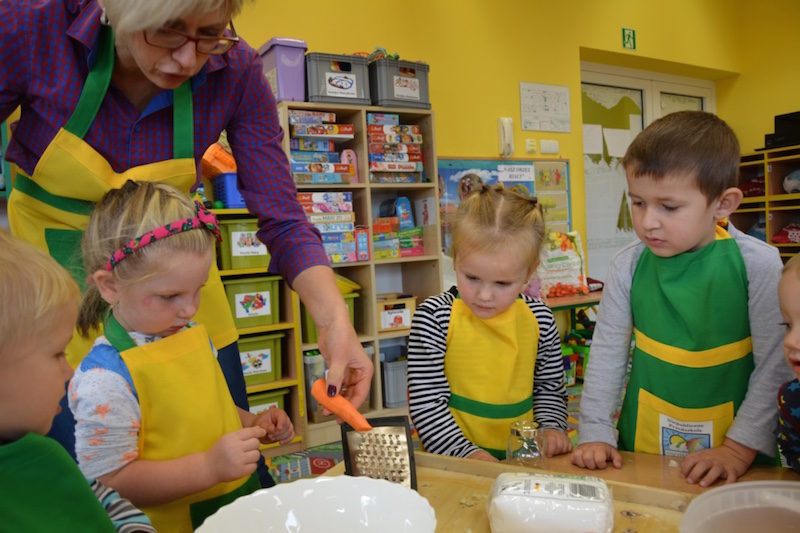 W ramach realizacji tematu „Zapasy na zimę”, małe Zuchy uczestniczyły w zajęciu kulinarnym – kiszenie kapusty. Dzieci miały okazje poznać kapustę wszystkimi zmysłami (wzrok, smak, zapach, dotyk). Po lekcji wstępu i po przedstawieniu przepisu na kiszenie kapusty nadszedł czas na działanie. Wszystkie dzieci ochoczo rwały się do pracy – jedni obierali marchewki a inni już czekali z przyprawami. Wszyscy wspólnie mocno mieszali składniki by na końcu kapustę umieścić w „beczce”. Miejmy nadzieję, że niedługo zjemy ją do obiadu jako surówkę.