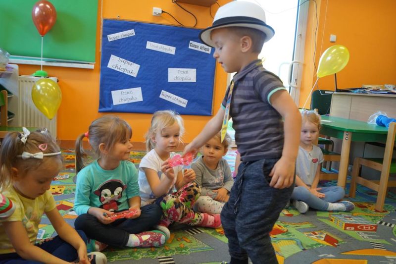 Innych przyjemności już nawet nie zliczę!Dnia 29.09.2017r. obchodziliśmy w Niepublicznym Przedszkolu „Promyczek” w grupie Smerfiki Dzień Chłopaka – Przedszkolaka. Dzień ten upłynął nam w miłej i radosnej atmosferze. Z racji święta, wszyscy chłopcy byli dzisiaj wyróżnieni, dziewczynki złożyły chłopcom najlepsze życzenia. Każdy chłopczyk otrzymał upominek. Cały dzień upłynął dzieciom na tańcach, śpiewie i zabawach. Za piękne życzenia dziewczynki również otrzymały upominki, aby w grupie nie było żadnej smutnej minki. Na koniec chłopcy mieli małą sesję zdjęciową w klasowej fotobudce.