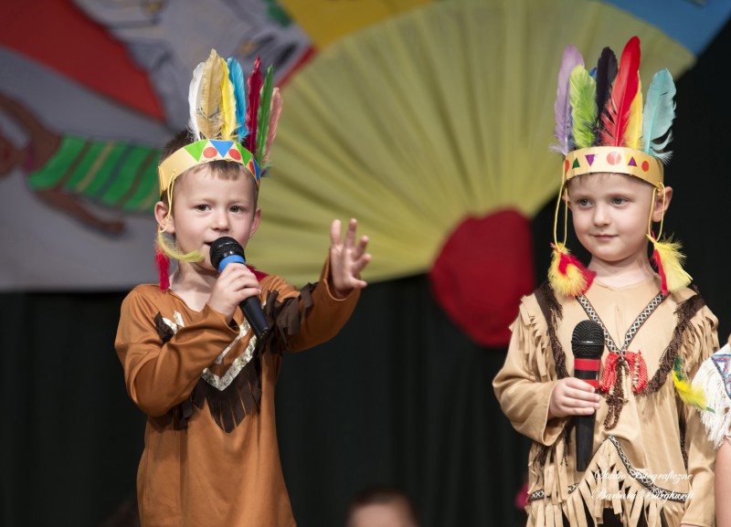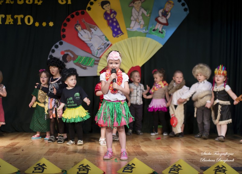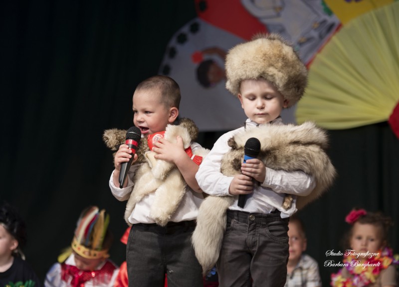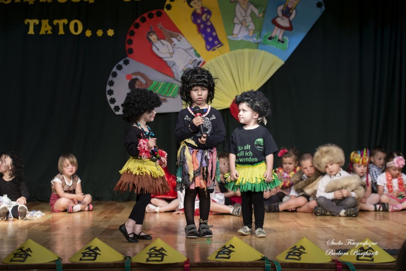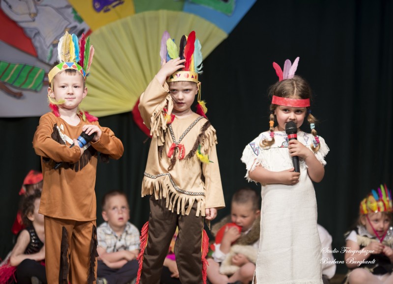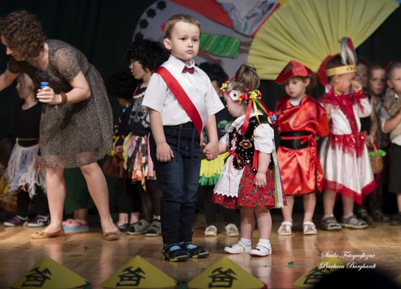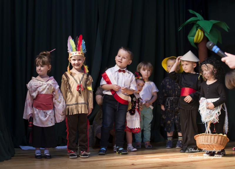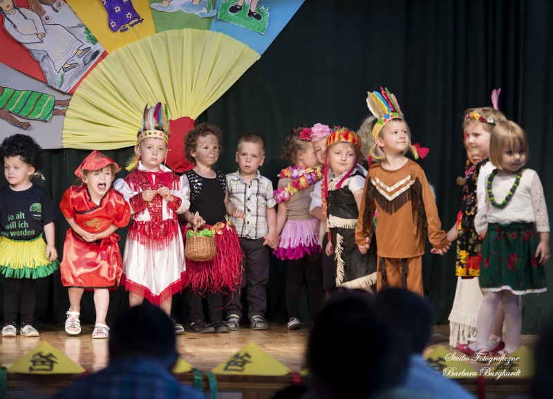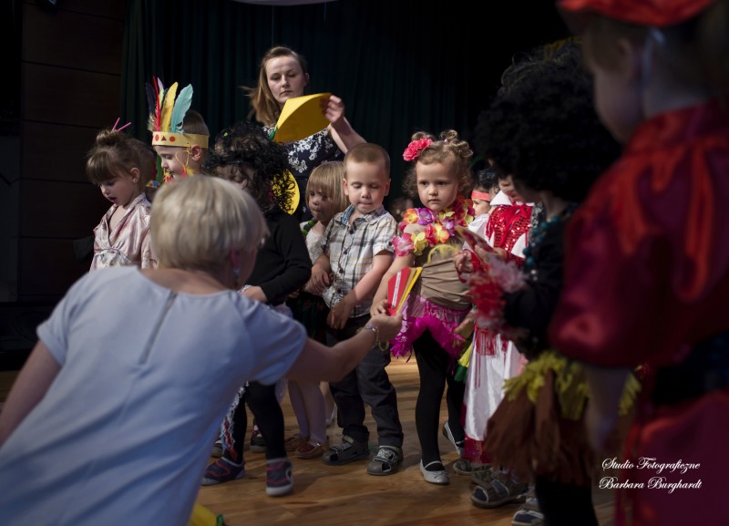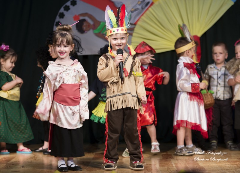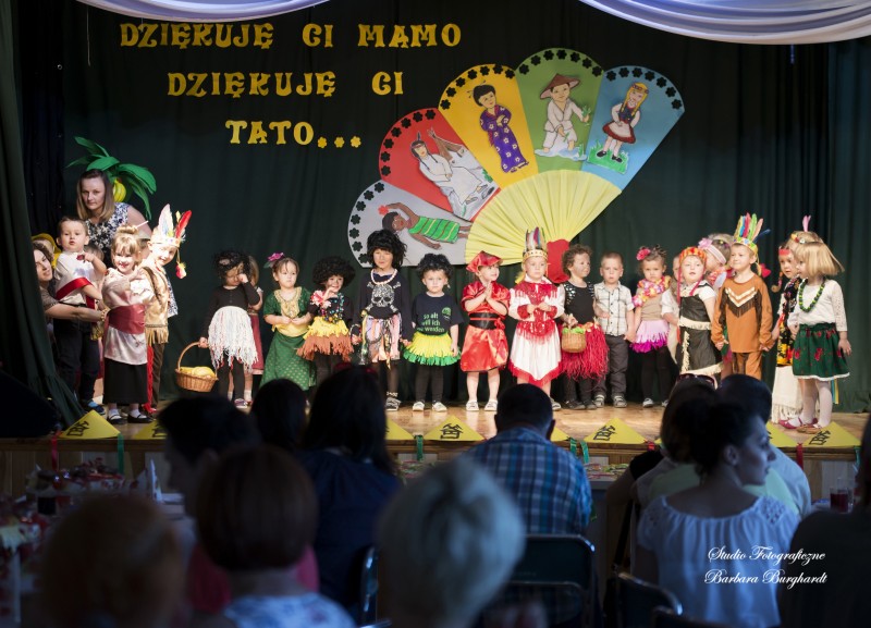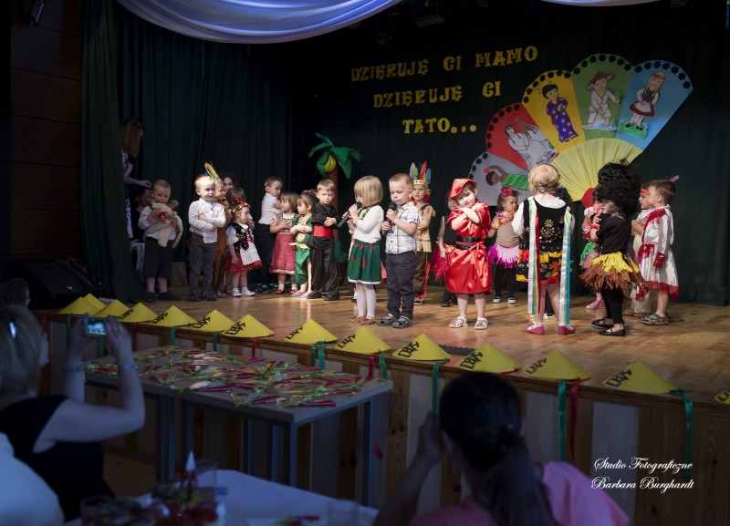 Tegoroczną uroczystość z okazji „Dnia Mamy i Taty” obchodziliśmy 1 czerwca. Był to dzień szczególny ponieważ w tym dniu swoje święto obchodziły również wszystkie dzieci. Promyczki z grupy „ELFIKI” przygotowały program artystyczny pt. „Dzieci świata”. Na akademię przybyli goście z różnych kontynentów: Azji, Afryki, Ameryki, Arktyki oraz Europy. Przedszkolaki świetnie wcieliły się w swoje role prezentując zabawy i piosenki ze swych krajów. Jako pamiątkę z podróży dzieci przywiozły swoim mamusiom piękne wachlarze, a tatusiom chińskie kapelusze. Mali artyści za występ zostali wynagrodzeni gromkimi brawami. Program przygotowały panie: Marta Bernat, Barbara Ruła oraz Magdalena Pierzchała. Dziękujemy panu Dyrektorowi Krzysztofowi Skórskiemu za oprawę muzyczną oraz pani Zofii Górskiej i Katarzynie Kołek za pomoc w przygotowaniu dekoracji. Wyrazy wdzięczności kierujemy do pana Dyrektora GOK-u Józefa Durdy za udostępnienie sali oraz pani Barbary Burghardt za wykonanie pamiątkowych zdjęć.