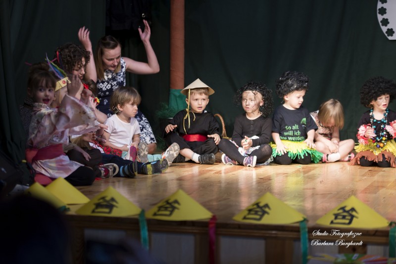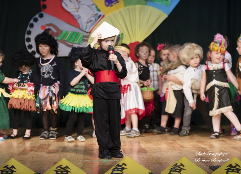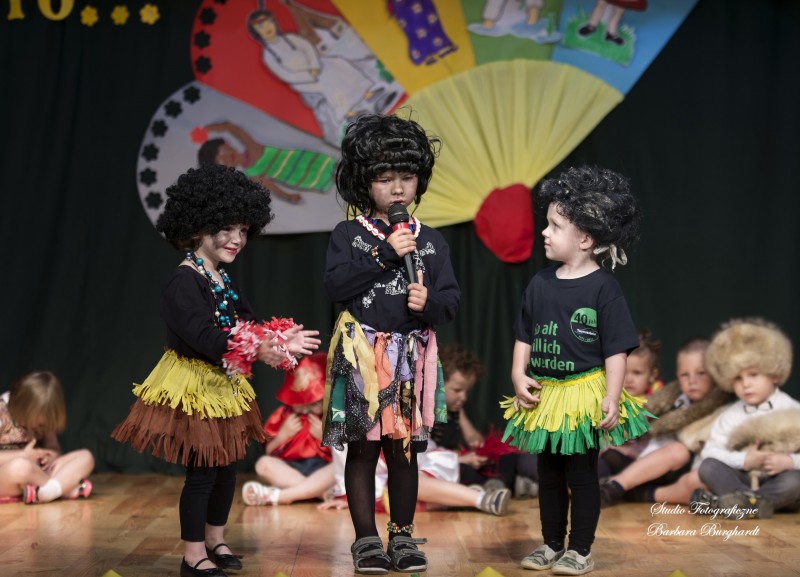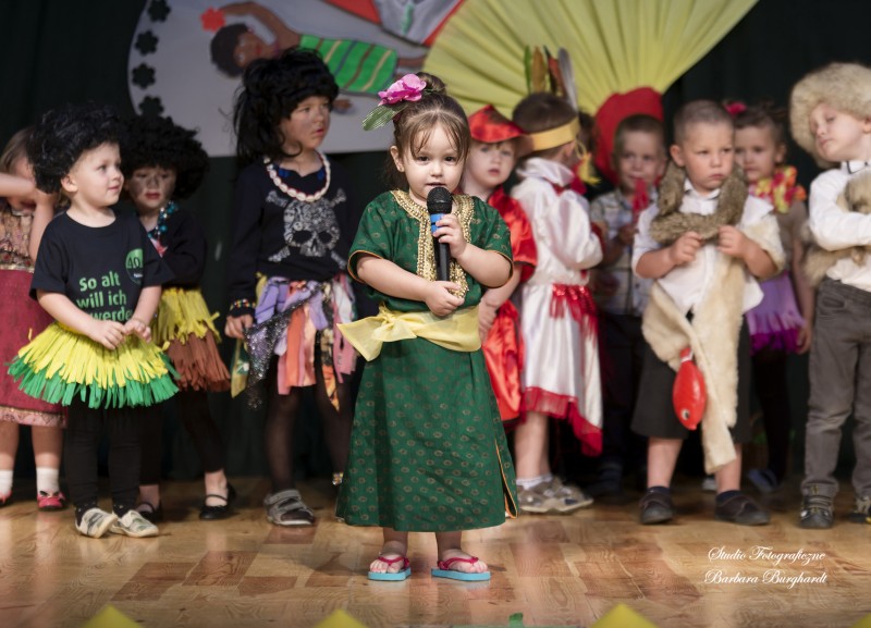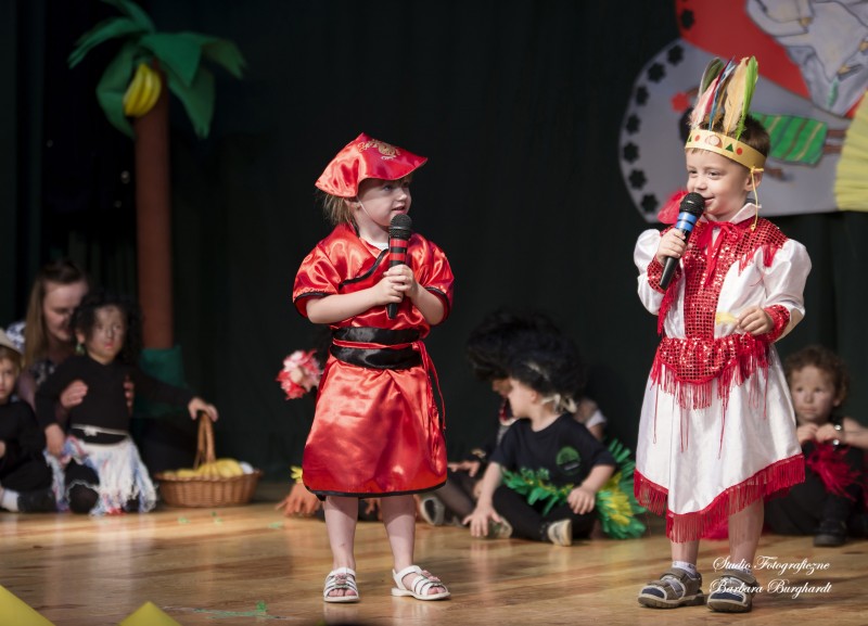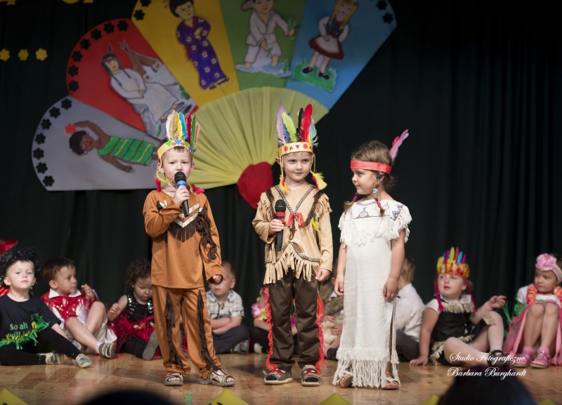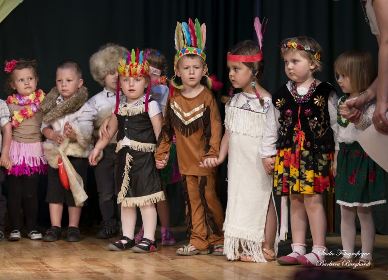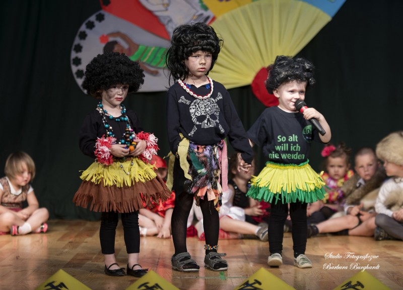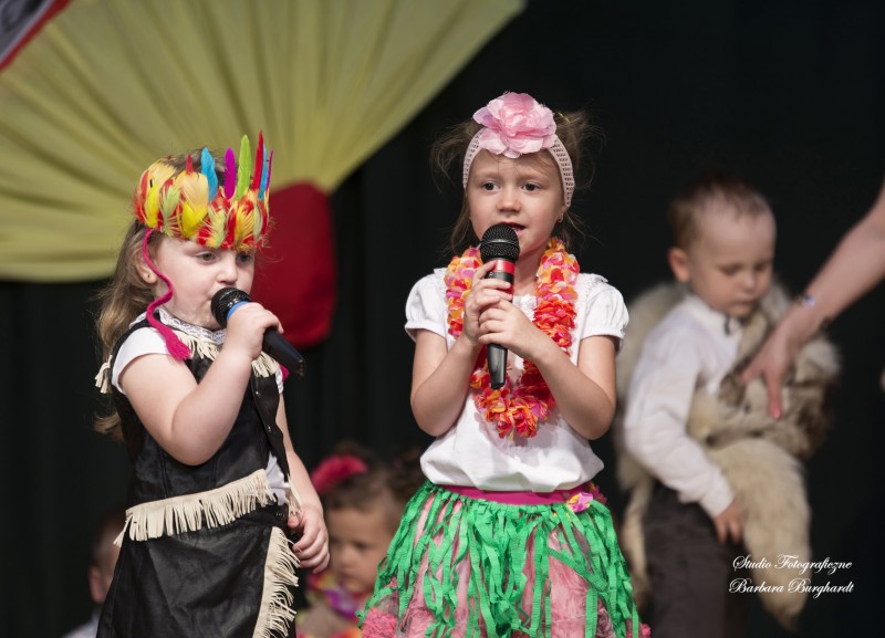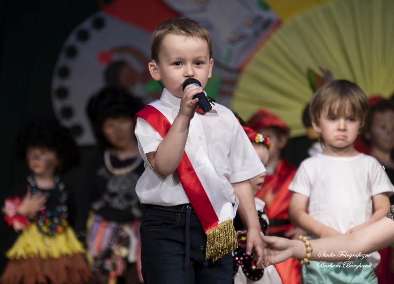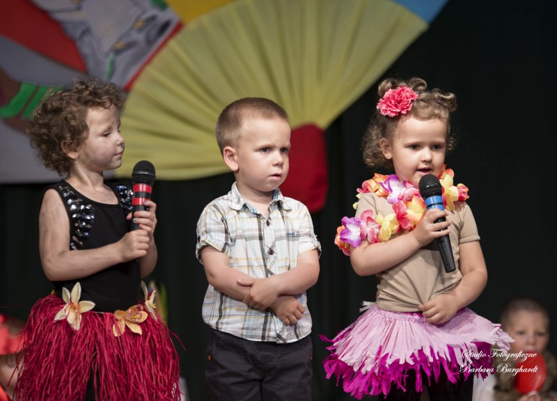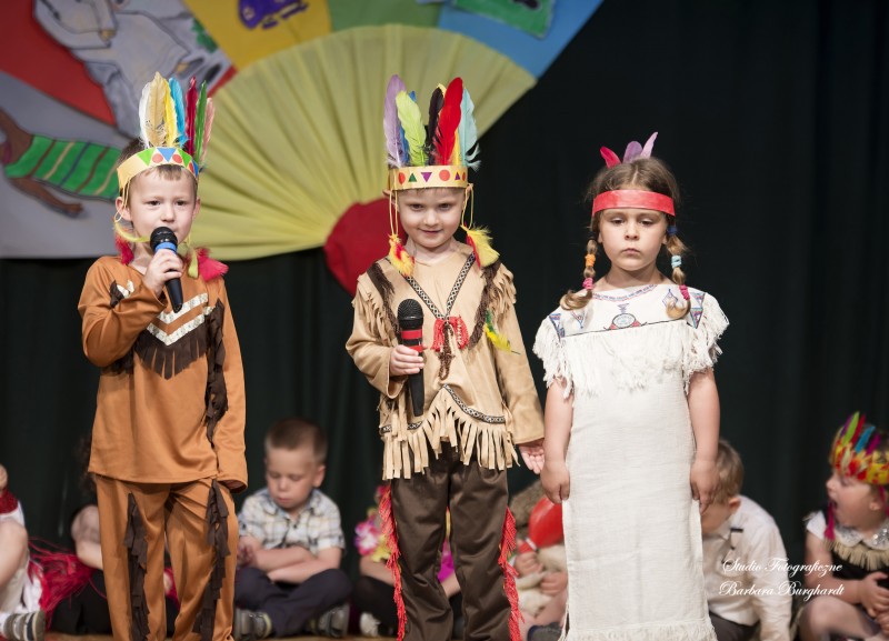 Tegoroczną uroczystość z okazji „Dnia Mamy i Taty” obchodziliśmy 1 czerwca. Był to dzień szczególny ponieważ w tym dniu swoje święto obchodziły również wszystkie dzieci. Promyczki z grupy „ELFIKI” przygotowały program artystyczny pt. „Dzieci świata”. Na akademię przybyli goście z różnych kontynentów: Azji, Afryki, Ameryki, Arktyki oraz Europy. Przedszkolaki świetnie wcieliły się w swoje role prezentując zabawy i piosenki ze swych krajów. Jako pamiątkę z podróży dzieci przywiozły swoim mamusiom piękne wachlarze, a tatusiom chińskie kapelusze. Mali artyści za występ zostali wynagrodzeni gromkimi brawami. Program przygotowały panie: Marta Bernat, Barbara Ruła oraz Magdalena Pierzchała. Dziękujemy panu Dyrektorowi Krzysztofowi Skórskiemu za oprawę muzyczną oraz pani Zofii Górskiej i Katarzynie Kołek za pomoc w przygotowaniu dekoracji. Wyrazy wdzięczności kierujemy do pana Dyrektora GOK-u Józefa Durdy za udostępnienie sali oraz pani Barbary Burghardt za wykonanie pamiątkowych zdjęć.