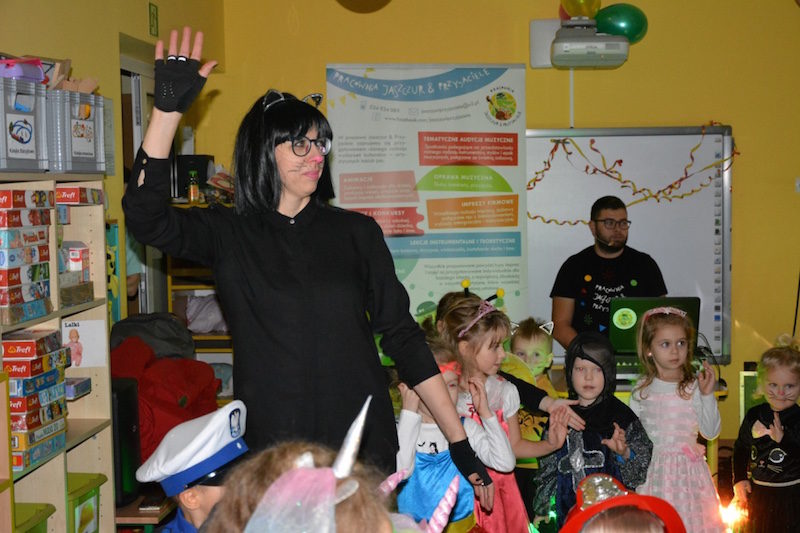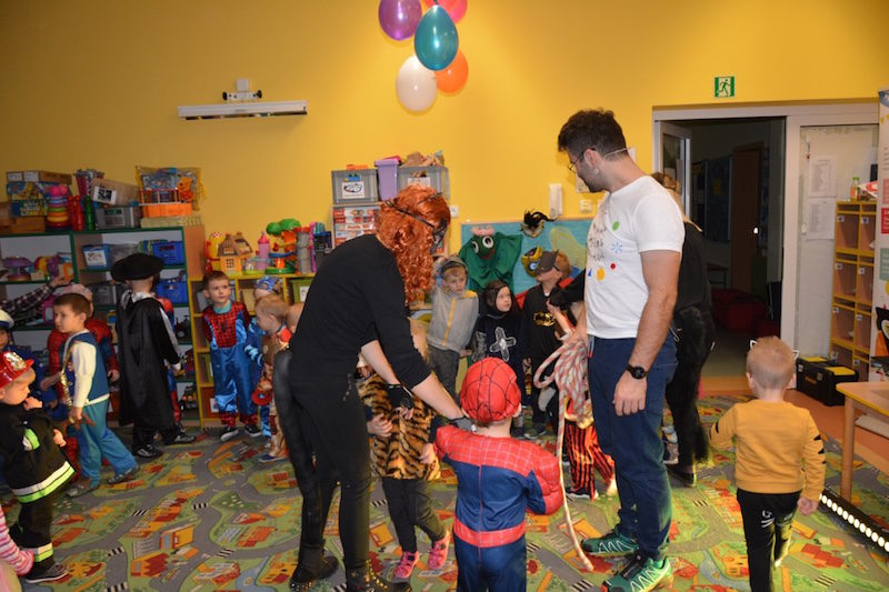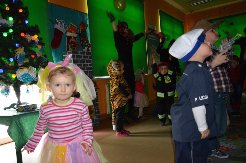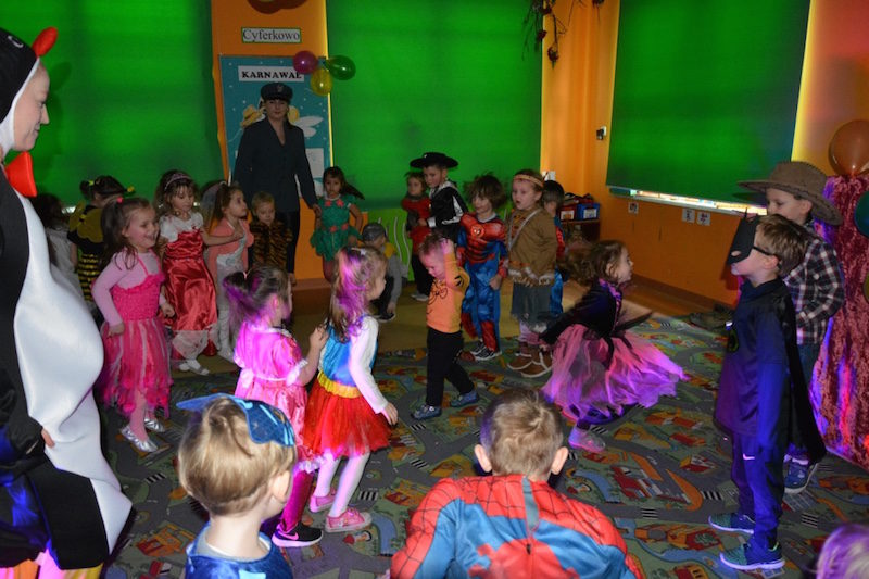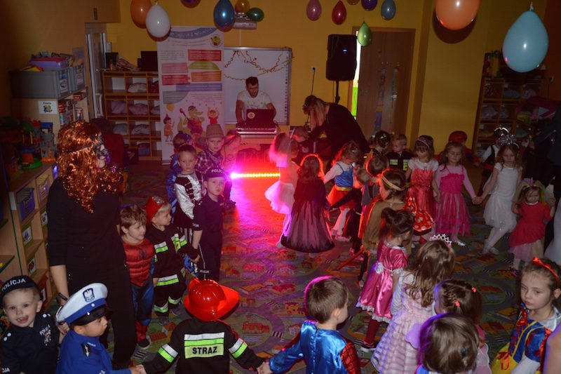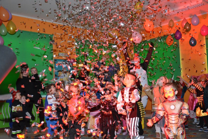 Bal karnawałowy w naszym przedszkolu to miła tradycja przepełniona muzyką i dobrą zabawą. Tak też było i w tym roku. We wtorek wszystkie przedszkolaki, pomysłowo przebrane bawiły się, śpiewały i tańczyły na balu przebierańców. Zabawę prowadzili profesjonalni animatorzy z pracowni „Jaszczur i przyjaciele. Wyśmienita muzyka oraz liczne, tematyczne konkursy wywołały uśmiech na twarzach dzieci! Super atrakcją były kolorowe dymy oraz wyrzutnia srebrnego konfetti!!!