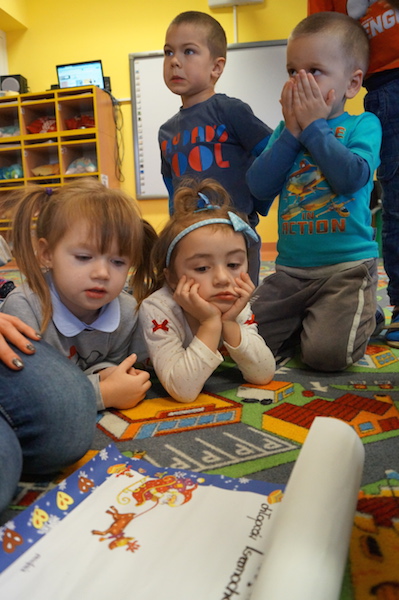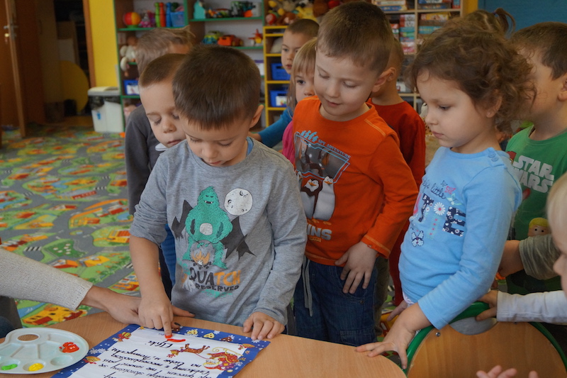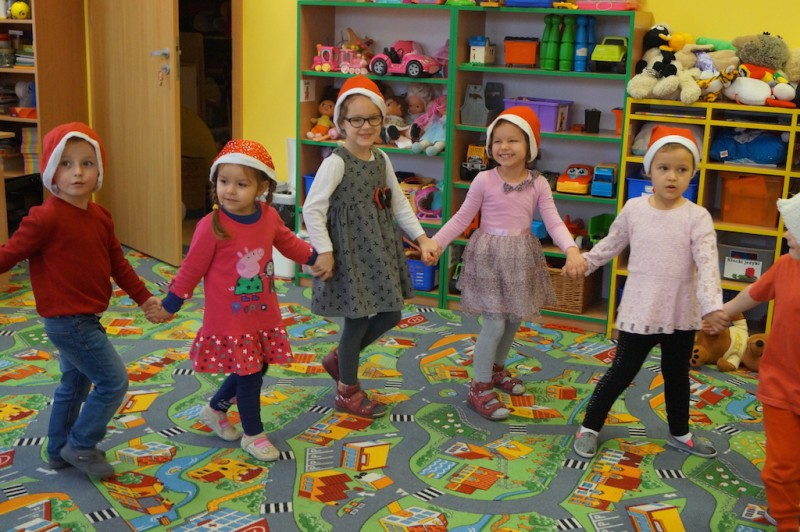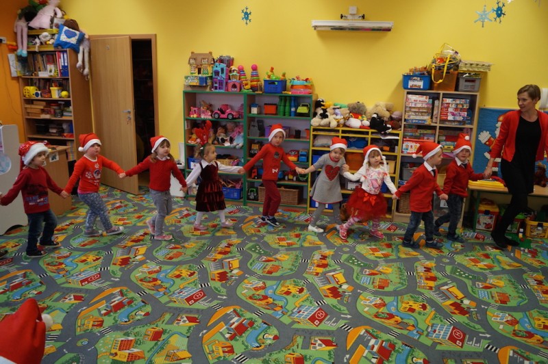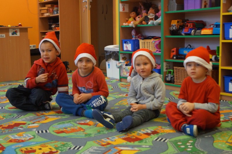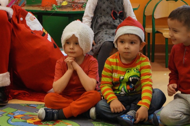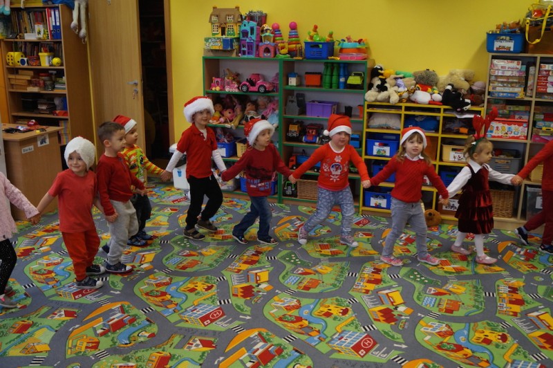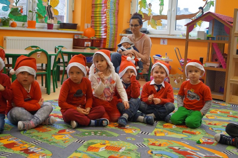 „Elfiki” długo przygotowywały się na przyjście oczekiwanego przez cały rok gościa, a kiedy się pojawił przywitały go piosenką i zatańczyły razem z nim w kole. Następnie Mikołaj usiadł w wygodnym fotelu i zapytał dzieci czy słuchają rodziców i pań? I w tym momencie nastała cisza, a po chwili słychać było cichutko: