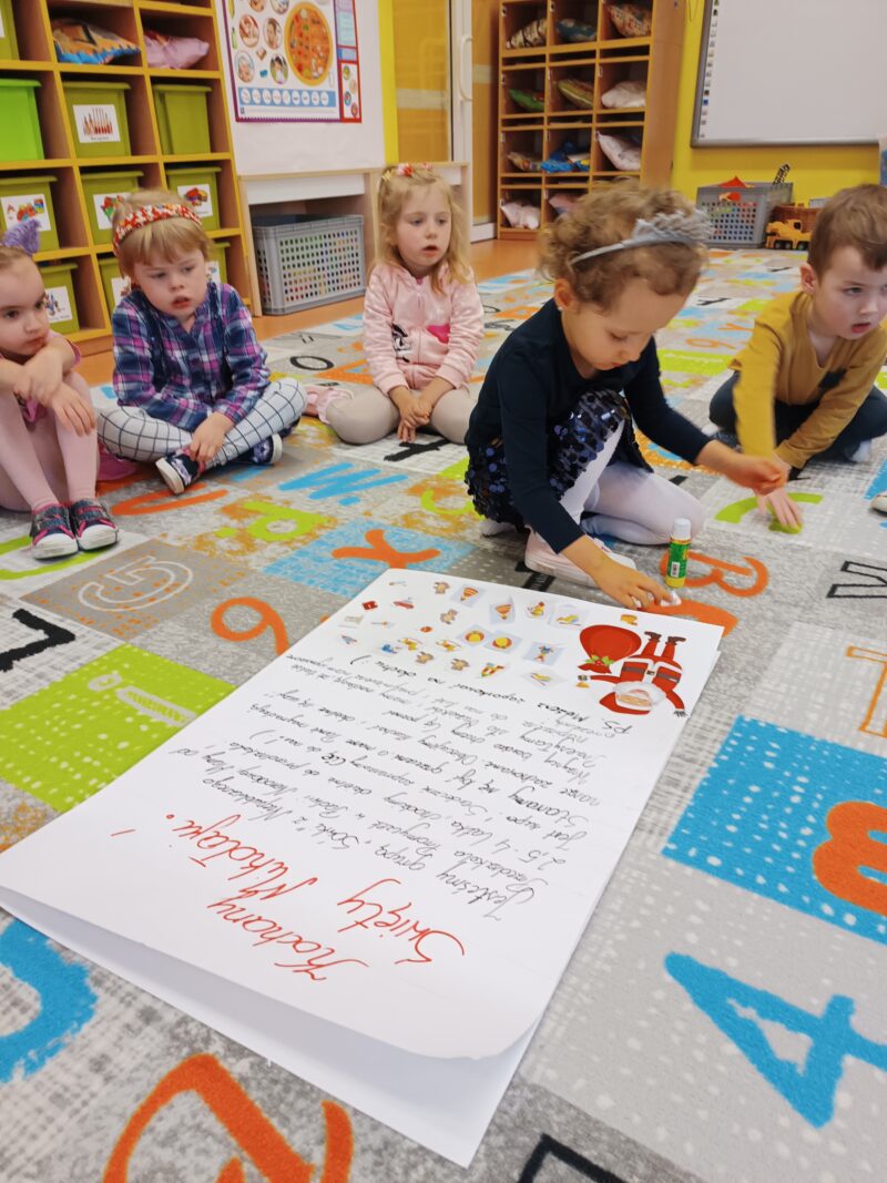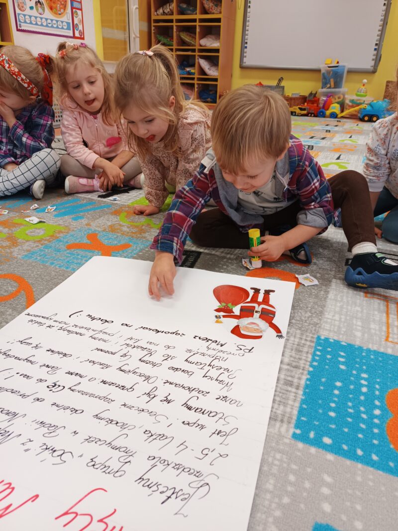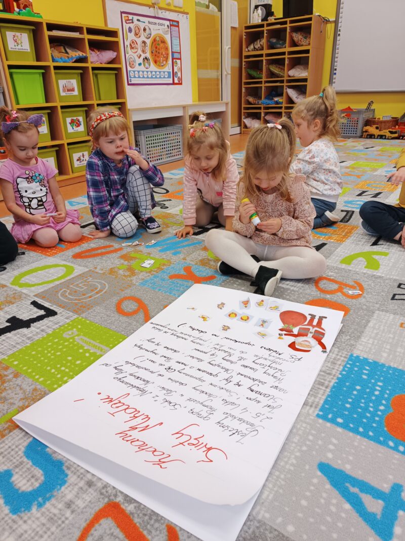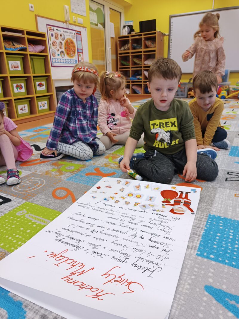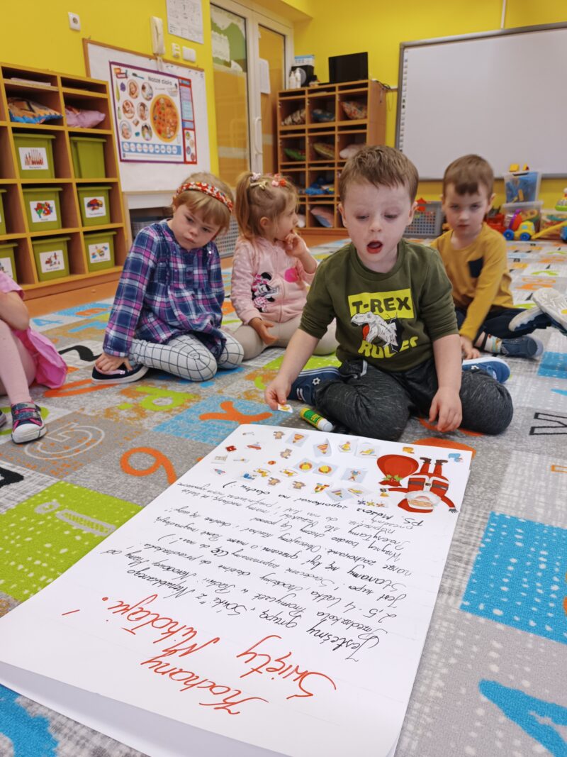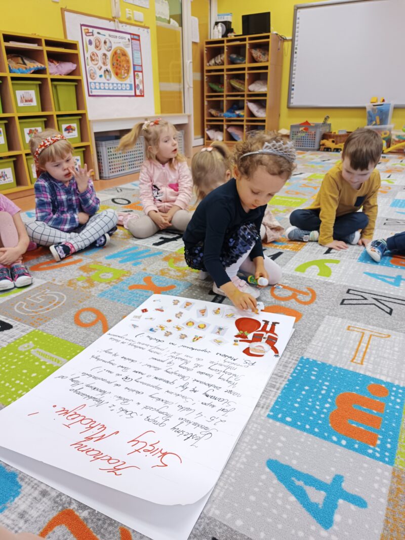 Wielkimi krokami zbliżają się Mikołajki. Przedszkolaki z grupy Sówki niemogąc się doczekać prezentów i wizyty św. Mikołaja postanowiły napisać i wysłać do niego list. W tym celu, wspólnie z panią,wycięły z wycinanki wymarzone podarunki. Pozniej odłożyliśmy list zawierający świąteczne życzenia dla św. Mikołaja. Teraz pozostało nam już tylko czekać na wizytę świętego.