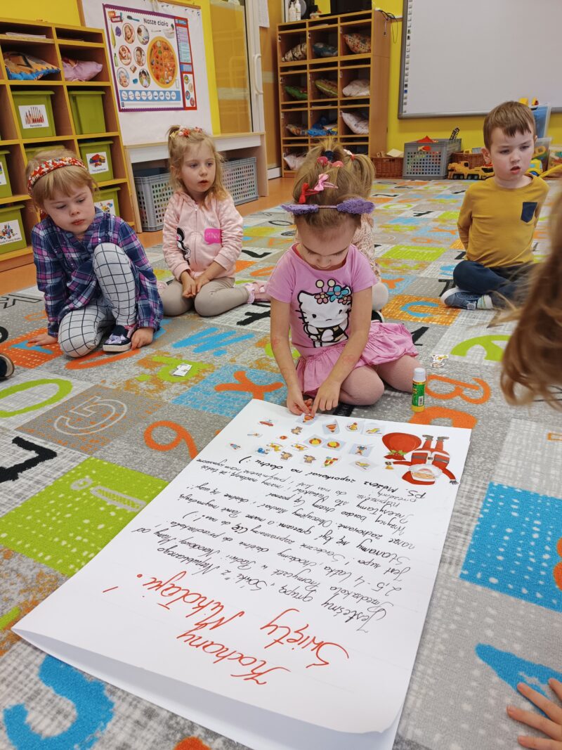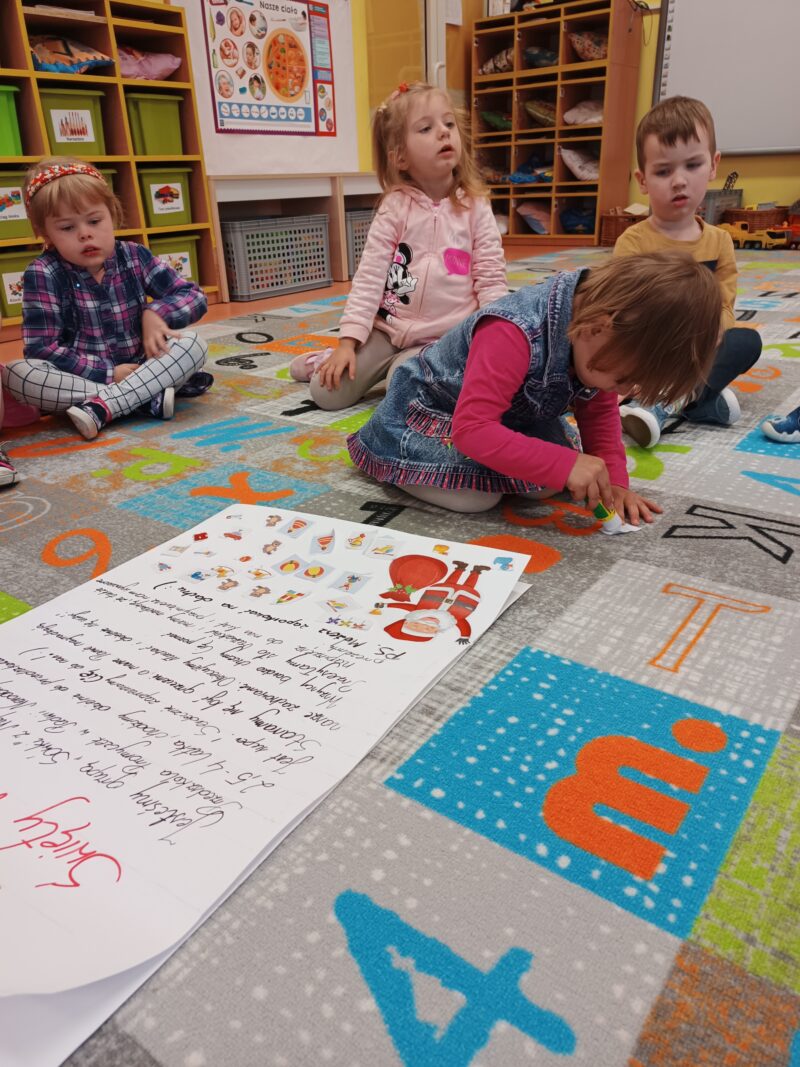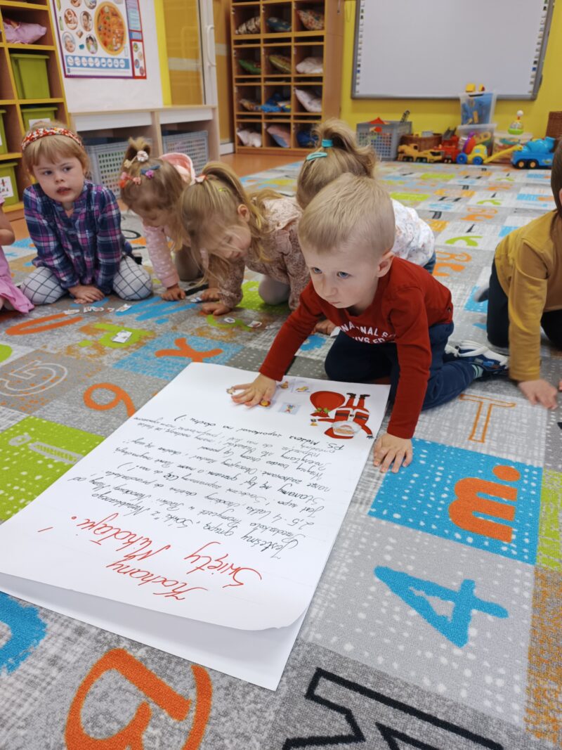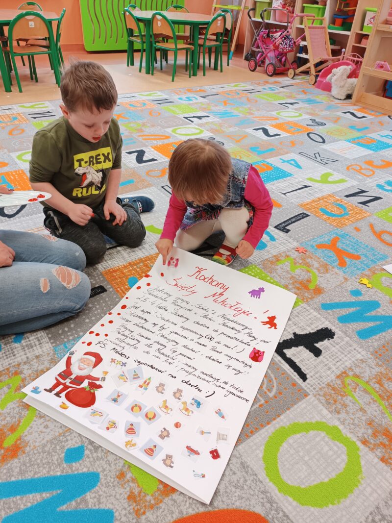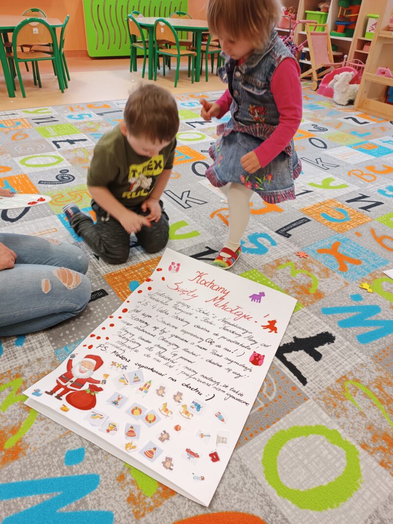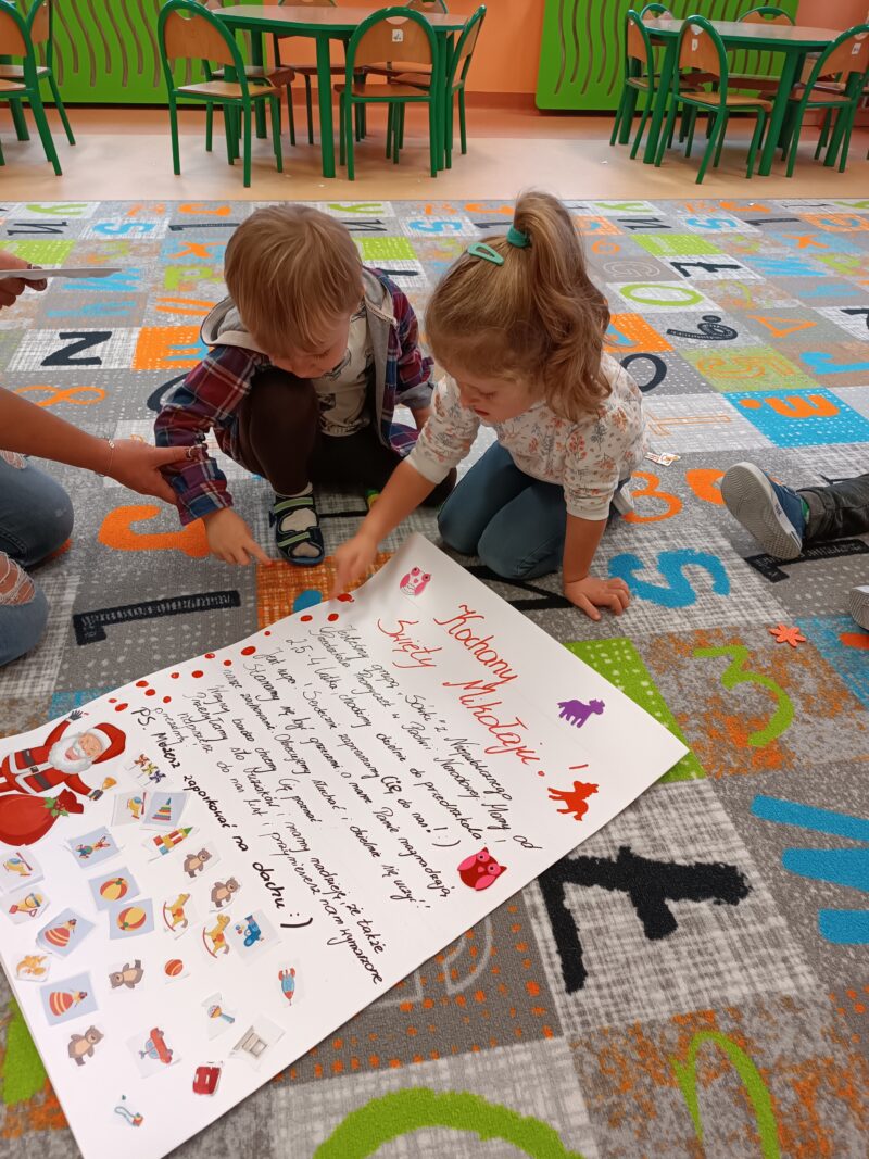 Wielkimi krokami zbliżają się Mikołajki. Przedszkolaki z grupy Sówki niemogąc się doczekać prezentów i wizyty św. Mikołaja postanowiły napisać i wysłać do niego list. W tym celu, wspólnie z panią,wycięły z wycinanki wymarzone podarunki. Pozniej odłożyliśmy list zawierający świąteczne życzenia dla św. Mikołaja. Teraz pozostało nam już tylko czekać na wizytę świętego.
