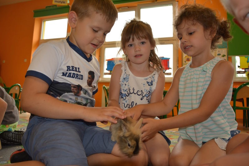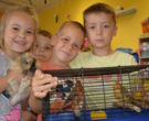 W minionym tygodniu obchodziliśmy „Tydzień Przyjaciela Zwierząt” mający na celu uświadomienie dzieciom konieczności opiekowania się zwierzętami domowymi. W ramach zajęć dzieci przyniosły do przedszkola i przedstawiały kolegom swoje zwierzątka oraz opowiadały o sposobach pielęgnacji swoich pupili. Najdłużej zagościła u nas papużka Maciek, którą przyniósł Mateuszek. Z jednodniową wizytą był u nas chomik Amelki, rybki Błażeja, Łukaszka i Piotrusia, kanarki Huberta i królik Olka. Odwiedził nas też pies Sułtan oraz kotka Lucy. Panie zwróciły uwagę dzieciom, że zwierzęta czują jak ludzie i nie są zabawką, którą można wyrzucić i dlatego ważne jest, jeśli ma się już jakieś zwierzątko w domu trzeba o nie dbać.