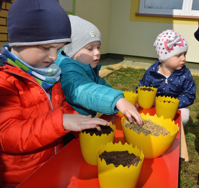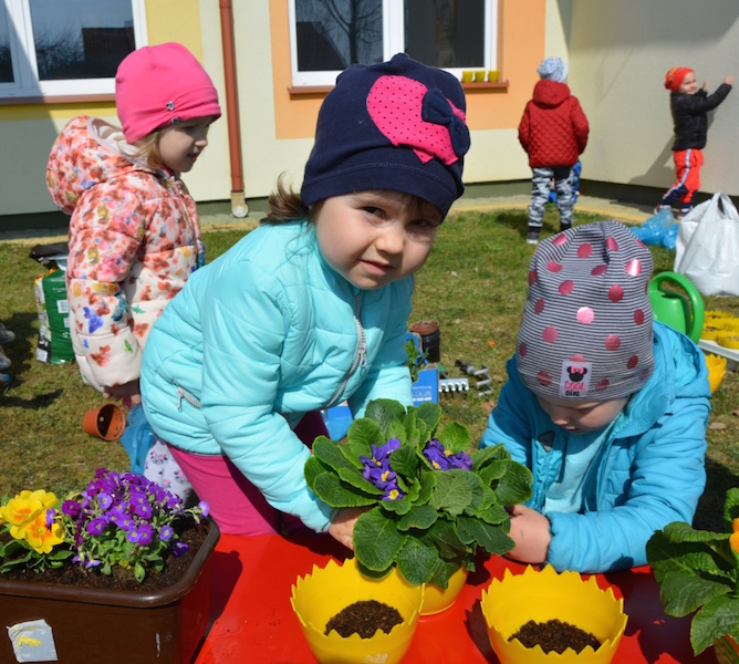 Nadeszła wiosna, a co za tym idzie w naszym przedszkolu rozpoczęły się prace ogródkowe. Początkiem kwietnia przedszkolaki podjęły się bardzo odpowiedzialnego zadania. Z pomocą wychowawców posadziły wiosenne kwiaty, które stały się ozdobą nie tylko ogródka, ale także przedszkolnej sali.