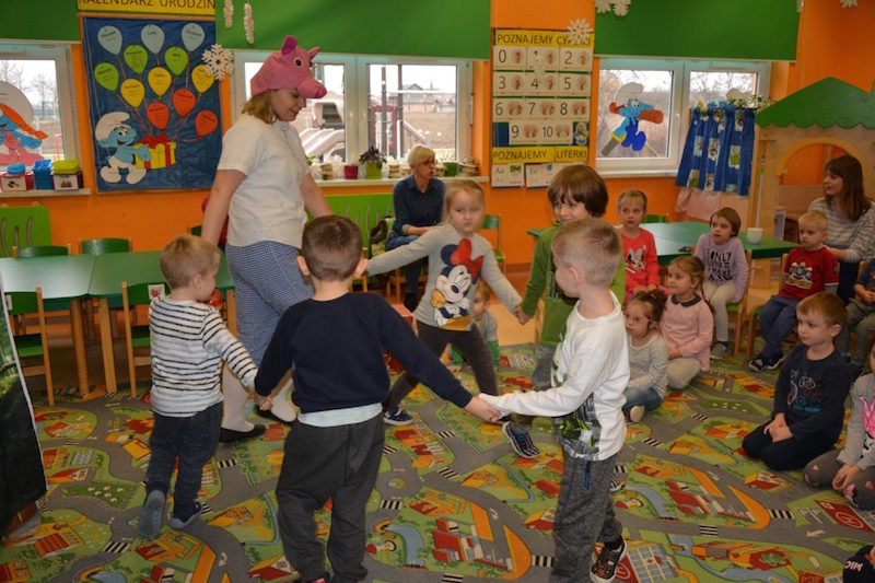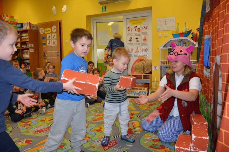 W minionym tygodniu przedszkolaki miały okazję obejrzeć przedstawienie pt. „Trzy świnki“ w wykonaniu aktorów z krakowskiego teatru. Dzieci choć doskonale znają tą bajkę , to z wielkim zainteresowaniem śledziły perypetie bohaterów. Urocze przedstawienie o trzech świnkach nauczyło nas, iż to, co w życiu ważne, wymaga przemyślenia i zaangażowania. Kolejny raz przekonaliśmy się, że …”ciężka, sumienna praca naprawdę się opłaca”.