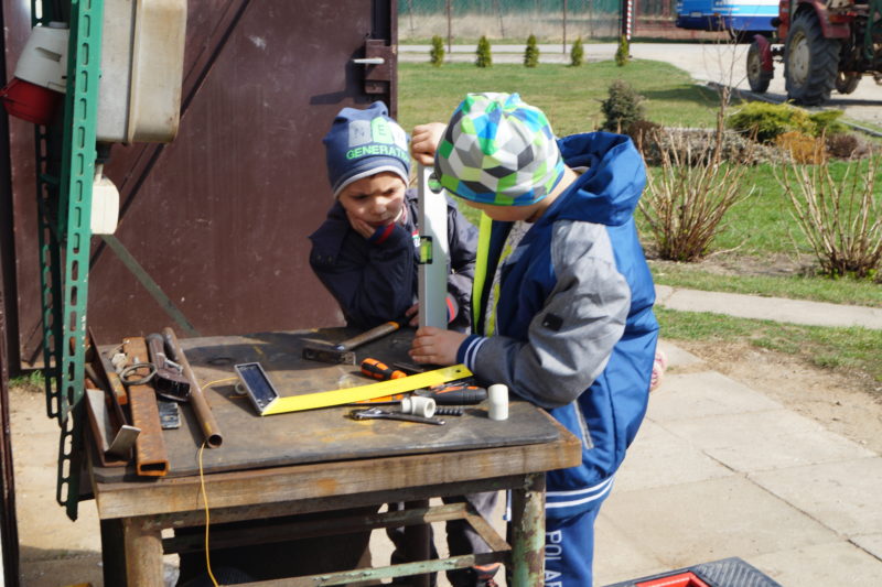 W pierwszej kolejności Staś pokazał nam cały park maszynowy, który u państwa Zyglów jest bardzo nowoczesny. Dzieci miały możliwość zobaczenia z bliska traktorów , kombajnu oraz innych maszyn służących rolnikowi w jego codziennej pracy. Nie zabrakło też pytań dotyczących przydatności poszczególne maszyn.