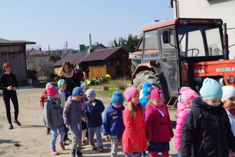 W dniu 31 marca dzieci z naszego przedszkola wybrały się na wycieczkę do gospodarstwa państwa Zyglów – rodziców i dziadków naszego Stasia. Celem wycieczki było poznanie życia na wsi, zwierząt hodowlanych w gospodarstwie oraz pracy rolnika. Naszym przewodnikiem po gospodarstwie był oczywiście Stasiu.